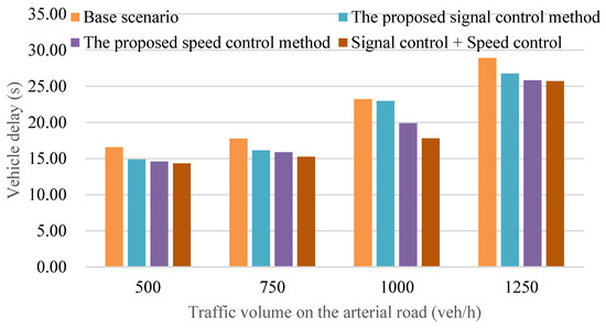 Figure 13. Comparison of average vehicle delay at different traffic volumes.