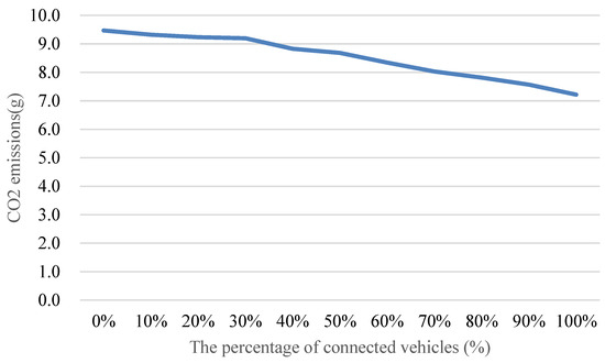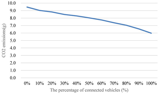 Figure 25. Comparison of the CO2 emissions with different penetration rates of connected vehicles.