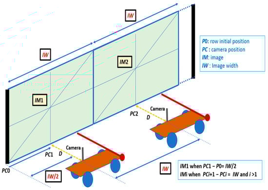 The vector may not follow during time a path which is strictly parallel to the scene, since the area could be non-uniform or/and the vector could be driven manually. As the distance between the camera and the row of plants is not fixed during the rover displacement, the acquired images overlap or have undesirable gaps between them. Moreover, from using an on-board