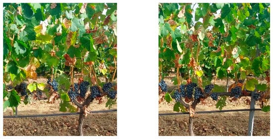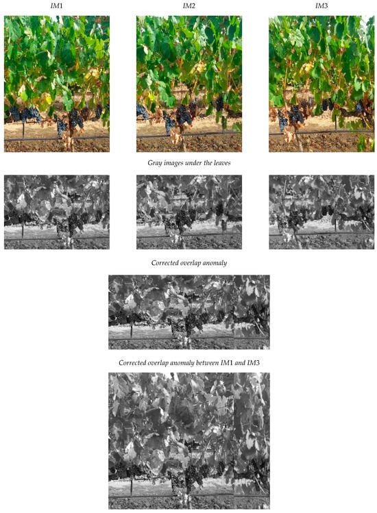 4], the authors report an automated prediction of vineyard yield from image acquisition in which two consecutive images contain a repeated vine segment and, consequently, only the overlap anomaly is considered. Consecutive images were matched using the ‘Auto Blend’ tool provided by Adobe Photoshop (Adobe Systems Incorporated; San José, 179 CA, USA) [