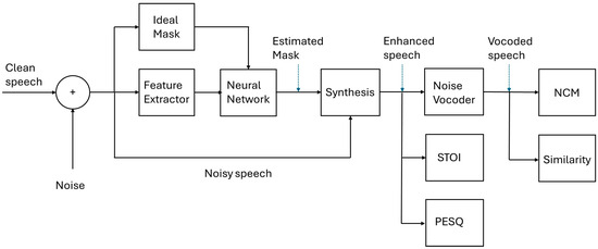 MATLAB R2023b was used for all experiments. Software for the neural network architecture and for calculating STOI scores was sourced at http://web.cse.ohio-state.edu/pnl/DNN_toolbox/ [32] (accessed on 5 April 2021) and adapted according to the needs of specific experiments. When conducting the oracle performance evaluations, software for computing the IBM was sourced at https://ch.mathworks.com/matlabcentral/fileexchange/33199-ideal-binary-mask (accessed on 3 March 2023). It was then modified to calculate the other masks used in this study. To simulate the behavior of a cochlear implant, the vocoder implementation at https://github.com/vmontazeri/cochlear-implant-simulation (accessed on 10 December 2020) was used. The software for calculating PESQ and NCM scores was sourced from the appendix of [44]. Software for calculating probability distribution functions and similarity was sourced at https://uk.mathworks.com/matlabcentral/fileexchange/97142-probability-density-functions-distance-and-similarity (accessed on 17 June 2024).