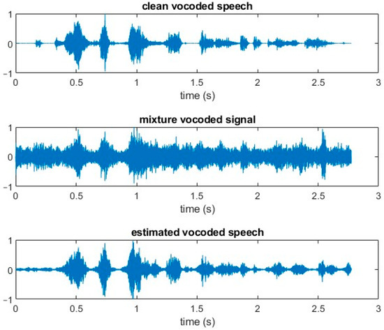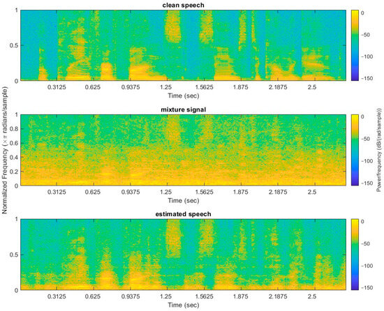 In each case, the estimated speech spectrum is calculated using Equation (17) as follows, where Mest is the estimated mask, Y is the noisy spectrum, and θY is the phase of the noisy speech.