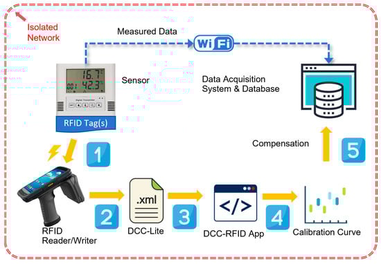 Figure 10 illustrates the process of DCC and measurement data compensation through RFID tags processing within the system.