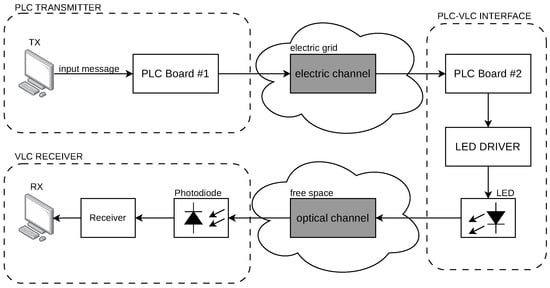 For a PLC-VLC system, the transmitted information must share two communication media of different physical origins. That is, the electrical medium, based on the transmission of electrical energy through cables where PLC technology is located, and the optical medium, accessed under the control of the electrical current of the LED load.