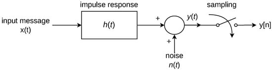 The input message is convoluted with the channel’s impulse response in which its result is affected by additive noise. Sampling may be applied to the resulting signal if a digital treatment is desired at the output, such as in the DF solution. Overall, the channel in the PLC-VLC system will differ in terms of the shape of the impulse response and the noise model employed to each solution.