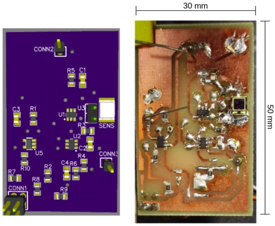- Buffering stage (OP2): The buffering stage in OP2 is utilized to match impedances and acts as a voltage follower to mitigate high-frequency noise originating from the preceding stage.