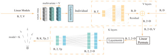 For NLP, the semantics of the overall sentence are preserved to a large extent, even if some of the words are reordered. However, trajectory prediction requires learning temporal changes of successive points, and order plays the most crucial role. Meanwhile, recent studies have emphasized that information about independence and correlation among multiple variables in time series prediction impacts the prediction results [14,15]. Transformer-based forecasting architectures typically embed multiple variables at the same timestamp into indistinguishable channels, causing multivariables to lose their independence. As a result, the performance of Transformers in long-term time series forecasting (LTSF) has been questioned. Researchers have found that the linear model LTSF-Linear [13] using only linear layers outperforms the complex Transformer and its variants in both performance and efficiency in the task of long-term time series forecasting, but have also found that linear layers in combination with other attentional components lead to degraded performance. Based on this study, iTransformer [16] achieved better results in time series prediction by centering on variables, embedding the entire time series of each variable independently into tokens, capturing multivariate correlations by the self-attention mechanism, and applying a feed-forward network to learn nonlinear representations for each variable token.