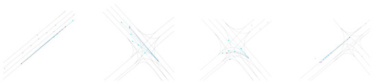 - Gao, J.; Sun, C.; Zhao, H.; Shen, Y.; Anguelov, D.; Li, C.; Schmid, C. VectorNet: Encoding HD Maps and Agent Dynamics from Vectorized Representation. In Proceedings of the IEEE/CVF Conference on Computer Vision and Pattern Recognition, Seattle, WA, USA, 14–19 June 2020; pp. 11525–11533. [Google Scholar]