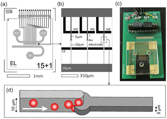 - Geng, Y.; Zhu, Z.; Zhang, Z.; Xu, F.; Marchisio, M.A.; Wang, Z.; Pan, D.; Zhao, X.; Huang, Q.A. Design and 3D modeling investigation of a microfluidic electrode array for electrical impedance measurement of single yeast cells. Electrophoresis 2021, 42, 1996–2009. [Google Scholar] [CrossRef] [PubMed]