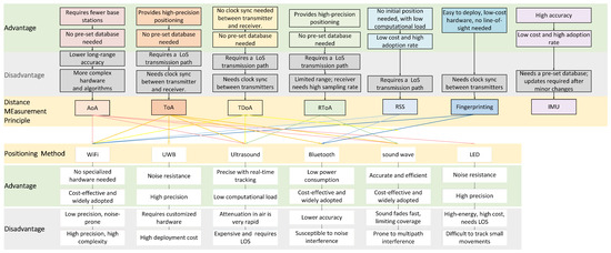 Although Bluetooth alone has limitations in achieving high precision, especially in environments with significant signal reflections and obstructions, recent research has shown that integrating it with technologies such as IMU, Pedestrian Dead Reckoning (PDR) [19], UWB [20], and ultrasonic positioning can effectively address these shortcomings. IMU and PDR provide continuous tracking of movement, helping to reduce drift and improve positioning accuracy over time, while UWB and ultrasonic systems offer higher precision and robustness against interference. This combination creates a more reliable and accurate positioning system, particularly in complex environments where Bluetooth signals face challenges.