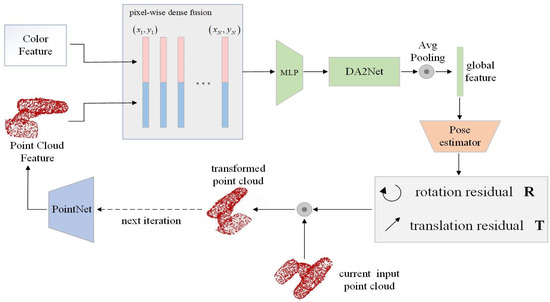 (2) With DenseFusion [16] serving as the primary framework, DA2Net was integrated into the feature-fusion network and the iterative refinement network to enhance the understanding of local details and infer occluded parts from global information.