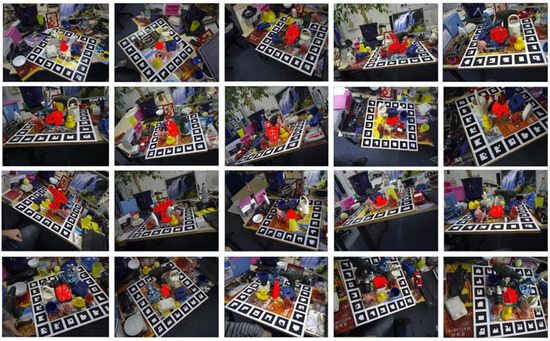 (2) Occluded LineMOD dataset: This dataset is particularly suitable for object detection tasks in occluded environments. It was created by annotating each scene in the LineMOD dataset, with a focus on complex scenarios involving inter-object occlusion, significantly increasing the challenge of pose estimation.