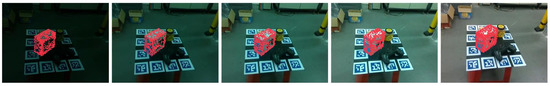 - Ababsa, F.; Mallem, M. Robust camera pose estimation using 2d fiducials tracking for real-time augmented reality systems. In Proceedings of the 2004 ACM SIGGRAPH International Conference on Virtual Reality Continuum and its Applications in Industry, Singapore, 16–18 June, 2004; pp. 431–435. [Google Scholar]