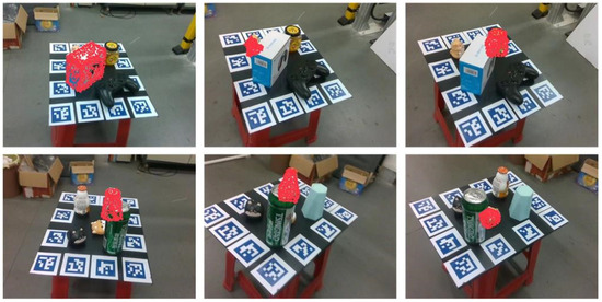 Results demonstrated that the enhanced DenseFusion-DA2 network improved performance compared with the original DenseFusion [16]. DenseFusion-DA2 demonstrated enhanced robustness in handling light variations and occlusion issues, with an estimated accuracy improvement of 3.4% on the LineMOD dataset compared with DenseFusion [16]. Furthermore, it outperformed PointFusion [30], PVNet [31], SSD6D [32], and PoseCNN [25]. In addition, the estimation accuracy also shows a significant advantage on the Occluded LineMOD and HR-Vision datasets.