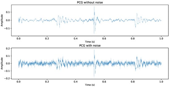 Top: Original PCG recording; Bottom: PCG recording after adding Gaussian noise.