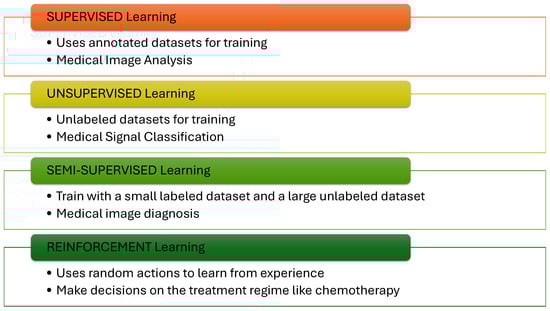 - Shehab, M.; Abualigah, L.; Shambour, Q.; Abu-Hashem, M.A.; Shambour, M.K.Y.; Alsalibi, A.I.; Gandomi, A.H. Machine learning in medical applications: A review of state-of-the-art methods. Comput. Biol. Med. 2022, 145, 105458. [Google Scholar] [CrossRef]