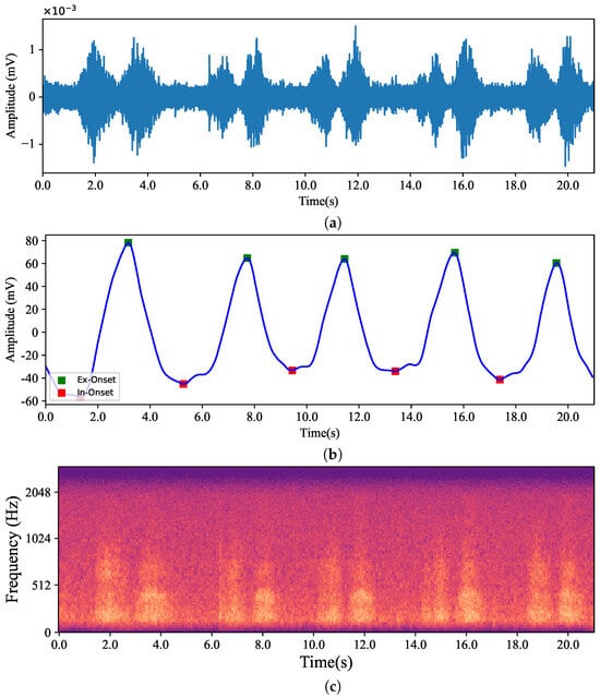 Additionally, inhalation and exhalation, along with their respective characteristics, are vital for precise predictions and the effective management of infectious disease transmission. This importance arises from the fact that the exhaled air from infected individuals serves as a primary source of contagious viruses [22]. Additionally, monitoring the patterns of successive inhalation and exhalation can aid in anticipating the onset of neurodegenerative diseases, such as Parkinson’s disease [23].