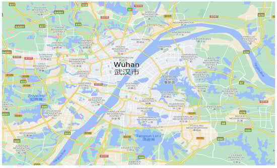 The road dataset utilized in this study was obtained via the OpenStreetMap. A simplified map of the road network of Wuhan City, China, is presented in Figure 2. The map gives a visual representation of the interconnected road segments and intersections in the city.