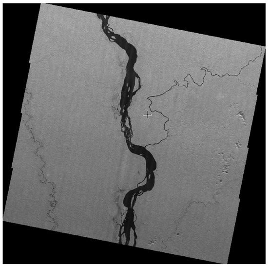 The SAR payload can be designed with Scan 1 mode and Scan 2 mode in order to meet the user’s needs for low resolution and a wide mapping band, among which Scan 1 mode can achieve a 10 m resolution and 70 km width. Scan 2 mode can achieve a 20 m resolution and 200 km width. The payload of the Amazon rainforest was imaged using Scan 1 mode, as shown in Figure 14. This imaging mode can be used for the normalized monitoring of the Amazon rainforest for monitoring applications such as deforestation and forest fires.