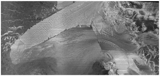 The depletion of the Antarctic ice sheet, a significant source of Earth’s freshwater, contributes directly to the increase in global sea levels and the freshening of the Southern Ocean. Research using observations and simulations has shown that the melting of ice shelves at their base, caused by the penetration of warm water onto the continental shelf of Antarctica, has a crucial impact on the overall mass equilibrium of the ice sheet. The Antarctic glacial tongue was observed by the SAR system in March, 2024. With a width of 350 × 200 km, the scene can completely cover the Antarctic ice tongue. From the results in Figure 15, we can see the shape of the ice tongue, which can be used to further study the melting state of Antarctic ice and snow.