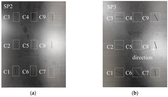 Specimens 2 and 3 were processed similarly but with different orientation angles and geometries to capture diverse crack damage information, as shown in Figure 3.