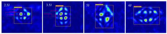 This study used CFRP impact damage defects as a case study. The eddy current detection results for impact energies of 2.5 J, 3.5 J, 5.5 J, and 6 J were utilized to detect defects with the EDC-YOLO model, as illustrated in Figure 21.