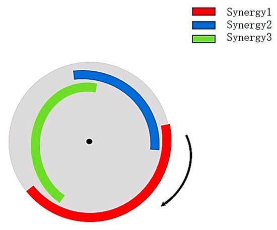 Then, we matched the synergies of all subjects in each group one by one by Pearson’s correlation coefficient to obtain k groups of synergies [36]. Finally, the activation order of the k synergies was determined by the activation time of H, forming a schematic diagram of the k muscle synergies corresponding to the cycling cycle.