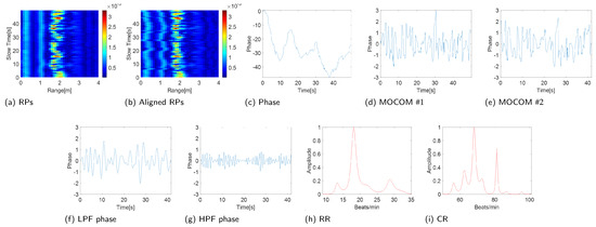 Because the RPs of the body can be contaminated by noise or surrounding clutter, the phase of the RP can be distorted. In addition, determining the exact location of the chest is difficult, because the reflected signal is the sum of several body parts, mainly the torso, which can be buried within the torso signal. Therefore, we applied PCA to denoise and decompose vital signals.