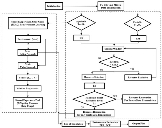 To address these challenges, we propose the Shared Experience Actor–Critic (SEAC) reinforcement learning technique, which optimizes resource allocation in aperiodic traffic scenarios by overcoming the limitations of both SB-SPS and DS. SEAC leverages shared experiences among vehicular agents to reduce collisions and to improve resource utilization. It dynamically allocates resources by considering both real-time decisions and long-term impacts, ensuring sustained performance in high-density vehicular environments [18].
