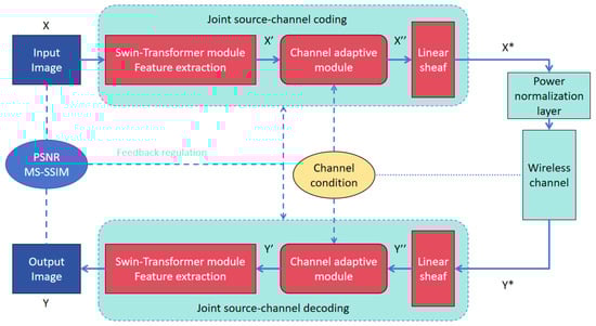 The decoder component of the model’s source–channel joint decoder exhibits a structure akin to that of the encoder. It undertakes the task of reconstructing image Y from a noisy information-laden image feature Y* using multiple modules. The Mean Squared Error (MSE) is computed by comparing the original image X with the reconstructed image Y. Peak Signal-to-Noise Ratio (PSNR) and Multi-Scale Structural Similarity (MS-SSIM) metrics are employed for fine-tuning the overall model architecture. The model is trained end-to-end, enabling the adjustment of parameters within each module to optimize the model’s performance. This approach significantly bolsters the model’s adaptability and resilience.