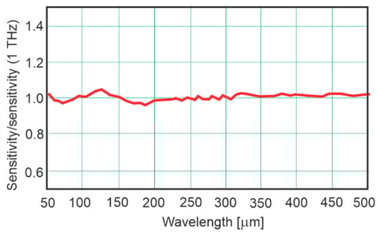 The paper by D. Seliuta et al. describes another broadband thermal THz detector that utilizes a silicon lens-coupled asymmetric bow-tie diode based on an In0.54 Ga0.46 As layer []. Its spectral response ranged from 10 GHz to 2.52 THz at room temperature, and the voltage responsivity was 5 V/W below 1 THz. Therefore, it is useful for various applications, such as security imaging, medical diagnosis, and environmental monitoring.