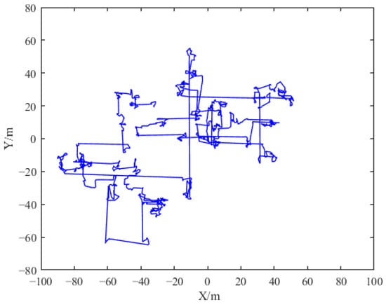 where μ and ν obey the standard normal distribution, σμ = σν = 1, their dimensions are consistent with each individual in the population, and λ is generally taken as 1.5. Figure 4 presents a simulated image of the Lévy flight path.