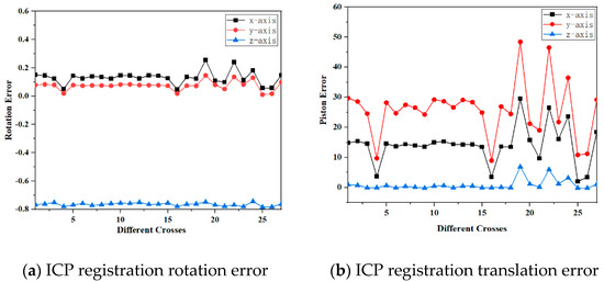 In the ICP registration algorithm, analysis of rotational and translational errors along the XYZ axes revealed consistent patterns. Specifically, the mean squared rotation error and translation error were used as evaluation metrics. Group 16 exhibited the most favorable error fitting according to these metrics, characterized by smaller rotation and translation errors compared to other groups.