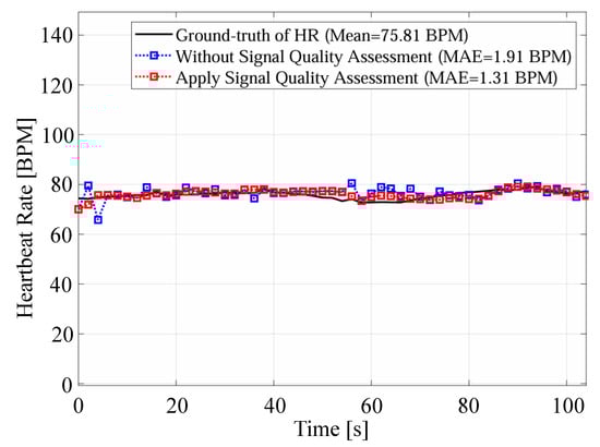 An example of the comparison of estimated heart rates with and without signal quality assessment.