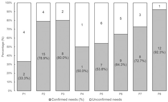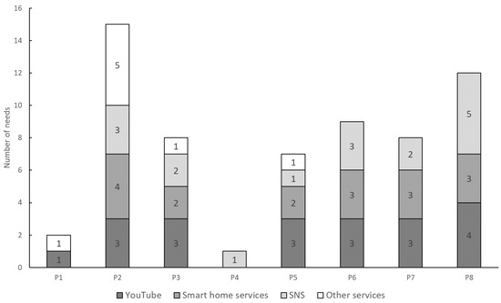 The number of needs per service for each participant and the survey results regarding service usage and requests are summarized in Figure 11 and Table 3, respectively.