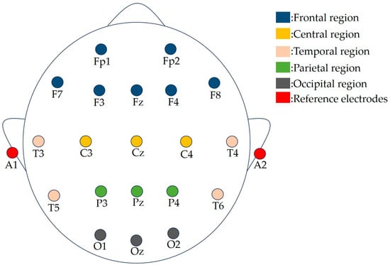 Electrodes placed in different brain regions in the 10–20 international standard system.