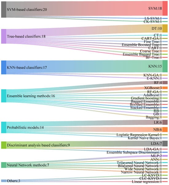 - Support Vector Machine-Based Classifiers: this category includes the Support Vector Machine (SVM) with various kernels and Least Squares-SVM (LS-SVM).