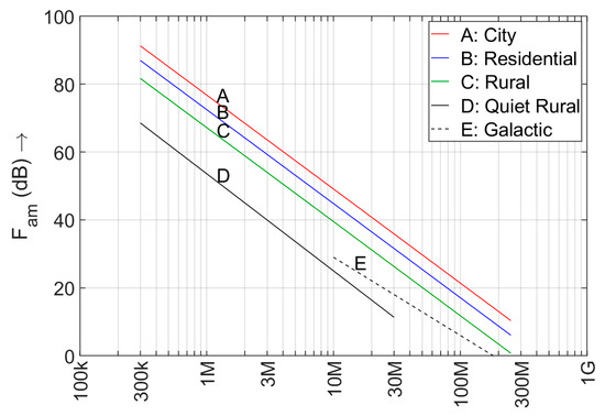 Ambient electromagnetic noise or ‘radio noise’ is the main limiting factor for advanced sensor systems that observe weak signals below 20 MHz, even in quiet rural locations. At these frequencies, at least when using an efficient transducer (antenna) of the sensor, the power produced by the external noise field exceeds that of the internal noise generated by the first amplification stages [1] (p. 766). In densely populated areas, the dominance of radio noise may extend beyond 500 MHz [2]. Examples of such sensor systems are radio equipment for security, health and safety, navigation [3] radio interception and direction finding [4]. Scientific instruments for radio astronomy [5], and for upper atmospheric and space weather observations—such as ionosondes, RIO-meters, polarimetric sensors [6] and incoherent scatter radars—may also be affected.