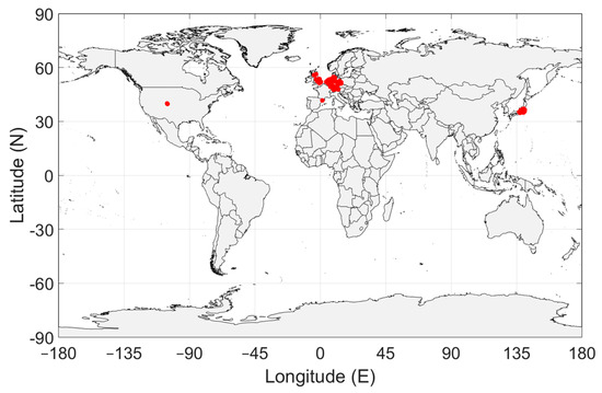 In Europe, the measurement locations do not evenly cover the continent. South Europe, Eastern Europe and Scandinavia are not represented. It can be seen in Figure 4 and Figure 7b that the geographical spread of the measurement locations is especially poor in Spain and in the USA. The number of measurement locations in each country is given in Table 2. Approximately 79% of the measurement locations are in Germany, see Table 1. The impact of these observations will be discussed in Section 4.