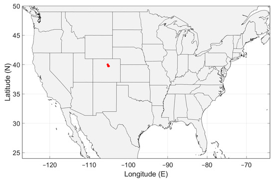 Geographical distribution of man-made noise measurements in the United States of America (USA). The measurements were done on two locations near Boulder, CO, USA.
