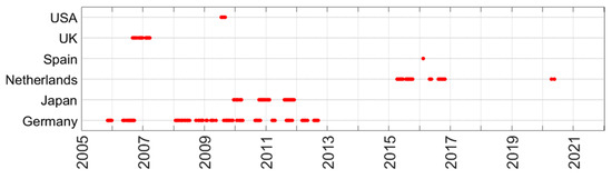 Figure 9 shows the distributions of the measurements over time. Consistently repeated measurements were only done in Germany between 2006 and 2013.