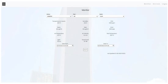 During the measurement period, all data were transmitted wirelessly through a Wi-Fi network and stored in a backend cloud server. As shown in Figure 1, these live results were accessible to the building occupants through a designated user-interactive web-based/mobile application platform, where they could review the data and record their subjective comfort sensations and acceptance regarding the thermal environment and IAQ. Each individual sensor’s specification of the IEQ sensing network is exhibited in Table 1.