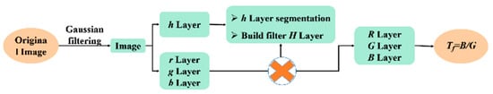 The conventional color modeling process encompasses multiple stages to extract Tf from the original image (Figure 8). The procedure initiates with Gaussian filtering, which is designed to mitigate random noise, thereby enhancing the precision of feature extraction. Subsequently, the DFCD method is employed to delineate the internal flame region by eliminating external flames. The following step entails the computation of Tf as the mean ratios of the B and G channels. This calculation is essential for establishing a correlation between Tf and Φ through cubic regression analysis, thereby optimizing the Tf extraction process.