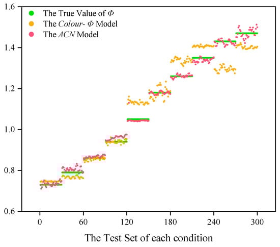 The effectiveness and superiority of the ACN model in feature extraction are illustrated in Figure 13, which depicts the variations in MAE and R2 values across training batches. It demonstrates a consistent reduction in MAE and an increase in R2, signifying the model’s convergence towards optimal performance. The model’s ability to adaptively modify training parameters plays a crucial role in this enhancement, thereby improving its capacity to accurately represent the nonlinear relationship between flame imagery and Φ.