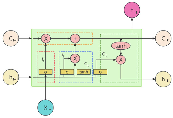 : Candidate Value Vector is created through a layer, and finally, combined with the forget and output gates, updates the information, as per Equation (3). : Output Gate determines the output values for the next state. It assesses the current amount of information based on inputs from and to decide what can be output. The current information is processed through a layer, normalizing the values between −1 and 1, and is then multiplied by the output values , to produce the final output , as per Equation (5).