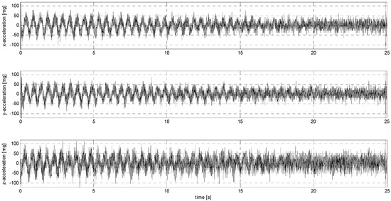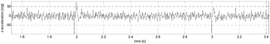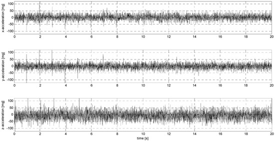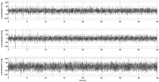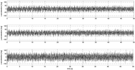 | Name | X-Axis [mm/s2] | Y-Axis [mm/s2] | Z-Axis [mm/s2] | Resolution [bits] | Threshold [mm/s2/LSB] |