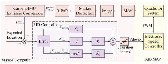 Then is initialized to 0. This is carried out to allow the MAV to normally increase its speed during the integral accumulation phase, and to reset the integral amount when saturation occurs in order to control the speed. Finally, the PID output is converted to velocity:
