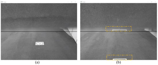 This improvement is attributed to the CRA, which enhances the tolerance in extracting the contours of ArUco markers, increasing the likelihood of detecting the ArUco marker in the early stages of the algorithm. By incorporating more targeted filtering criteria, it can accurately select the ArUco marker contour from numerous contours. Considering the camera’s sampling rate of 30 FPS, if the landing marker recognition frequency exceeds the camera’s sampling rate, real-time detection can be achieved. As shown in Table 1, within the horizontal distance range of 160 cm to 380 cm, the frame rate of landing marker recognition exceeds 40 FPS. However, in the range of 400 cm to 420 cm, limited by the resolution and depth of field of the camera, the position of the landing mark is beyond the visible distance of the lens, and the image becomes blurred. At the same time, due to the limited shooting angle, the angle between the landing marker and the camera’s optical axis becomes smaller, and the width of the image becomes narrower, making it difficult for algorithms to recognize the external outline of the marker. And, thus, the recognition frame rate drops significantly. Even at a distance of 420 cm, the fusion method of OpenCV and CRA still outperforms using OpenCV alone, greatly improving the MAV’s success rate in capturing markers at long distances, thus accelerating the transition from manual control to automatic guidance mode.