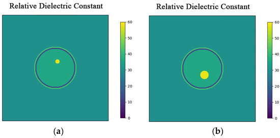 In the iterative algorithm, sufficient prior information is very important in ensuring imaging efficiency and quality. By incorporating prior information, such as the contrast of the target area tissue, the final imaging quality can be significantly improved. For example, spatial distribution [24] and dielectric constant values [25,26,27] can be used as prior information. Compared with the traditional Born iterative algorithm, the Quadratic programming Born Iterative Method (QPBIM) uses quadratic programming optimization and prior information on upper and lower bounds of contrast values to solve the inverse problem and has better stability and noise immunity [28]. These methods yield good imaging results for small targets at high resolution. However, increasing the resolution significantly extends the iteration time, and the absence of sufficient prior information can introduce artifacts in small target detection, impairing accurate target recognition.