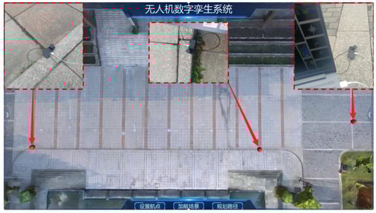 By quantifying the discrepancies between the two sets of coordinates, we assessed the accuracy of the coordinate mapping. The red dots in Figure 3 represent the locations in the virtual space corresponding to the latitude and longitude coordinates of the physical reference points. The photos within the dashed boxes show the positions measured by the RTK device in the physical space.